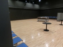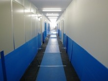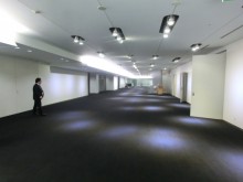 ① 展示会場入り口からメインフロア・各小部屋まですべて絨毯敷きの為、十分な養生が必要