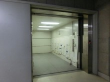 ③ 地下から展示会場に上げるエレベータは大型で安心
