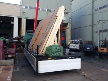 重量は2t弱程度でしたが、大型のガラスは補強無しで平置き状態にすると自重でたわんで割れてしまう事