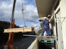こちらは研究施設へのガラススクリーンの搬入で、施設の2Fに搬入した事例です。