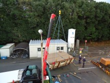 ④ 重量のある機器や傾斜出来ない精密機器等はユニック及びゴンドラにて搬入